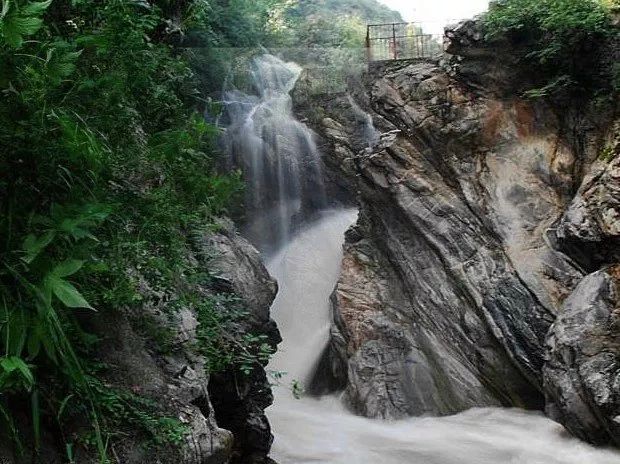 7月10日上午,我与小伙伴们结伴从西安市韦曲南出发,经过半个多小时的车程,在小伙伴们的欢呼雀跃声中,层峦叠嶂的秦岭山脉便映入眼帘。高冠瀑布坐落于秦岭北麓,相传此地为观音道场,因常现瑞云而得名。最近关中地区多为阴雨天气,当天也是天气阴沉,岭间云雾缭绕,秦岭山仿佛成了人间仙境。我们怀着异常兴奋的心情,首先到达的是高冠瀑布,站在山下远远望去,这里山形陡绝,瀑布飞下,如银河倒泻,大有飞流直下三千尺的磅礴气势。在瀑布下游河道两侧,是一家家各具特色的农家乐,他们热情的招呼每一位游客,让我们有一种宾至如归的感觉。忽然,一阵清风吹过,空气里飘来了迷人的饭香,原来是农家正在为游客做特色鳟鱼,我们看到等待菜品的游客,一边说笑一边打牌娱乐,尽情享受这美好时光。美食的诱惑没有阻挡我们前进的步伐,我们沿瀑布西侧崖壁拾级而上,首先穿过牛鼻洞,经过明道亭,最后登上鹰嘴石,站在悬于高冠潭顶上的观瀑台,我们向下俯视,瀑布真貌尽收眼底,巨大的水雾腾飞而上,让人有一种宛如仙境的感觉。再往上游走,是一处深潭,名为仙潭,深不可测,听说这里曾捕获过22斤的大鱼,可见潭内空间之大和潭水之深。再往上游步行约十分钟路程,是一道直通山顶的湍流,河道中形态各异、大小不一的奇石美不胜收,清澈的水流荡起层层花纹也甚是悦目,小伙伴们争先恐后的在奇石上拍照,在溪水中嬉戏,峪中伙伴们的欢声笑语不绝于耳。