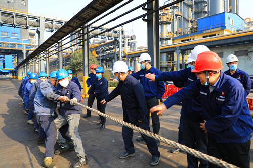 所到之处,公司领导班子与一线员工亲切握手、细心询问员工的工作及生活情况,并向在岗员工以及他们的家人致以新年的问候。同时,还就节日期间的安全生产问题向各单位提出了严格要求,叮嘱职工一定要注意每一个细节,在工作中要做到安全第一,认真做好节日期间安全隐患排查工作,保障节假期间的安全生产。不仅让员工们深深感受到了陕焦大家庭的关怀和温暖,同时记录了公司对每一位默默坚守岗位的员工的关心与关爱,记录了公司对每一位员工家人的支持和理解给予衷心的感谢,极大地鼓舞了全体职工的士气,增强了公司凝聚力和向心力。慰问期间,为了营造浓厚的节日氛围,炼焦一车间还组织开展了职工迎新春拔河比赛。