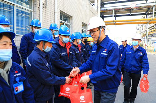 集体前往生产一线,向节日期间不能与家人团聚,仍然坚守工作岗位的一线员工送去了新春的祝福和慰问。