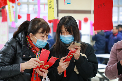 迷面前,人头攒动,热闹非凡。前来参与活动的员工时而抬头凝视,时而低头思考,时而互相商讨,时而兴高采烈;兑奖区,沸沸扬扬,前来兑奖的人们络绎不绝,每张脸上都有不同的表情,有在等待中满怀期待的,有中奖后兴高采烈的,当然也有没猜中而黯然失望的;领奖区,更是热闹非凡,喧闹拥挤的人群和忙得不亦乐乎的工作人员近相呼应,大家欢聚一堂闹元宵,处处洋溢欢乐祥和的节日氛围。