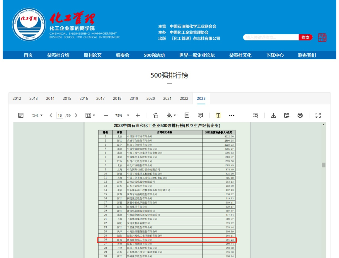 9月13日,“2023中国石油和化工企业500强发布会暨全面加快建设世界一流企业高峰论坛”在河南濮阳召开。会议揭晓了2023中国石油和化工企业500强排行榜,并首次发布了《石油和化工行业加快建设世界一流企业行动指南(试行)》,旨在指导全行业建设世界一流企业工作。会上获悉,公司位列独立生产经营企业第26位,较2022年位次前移5位。